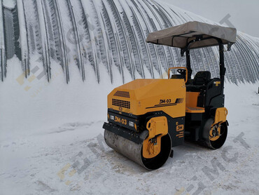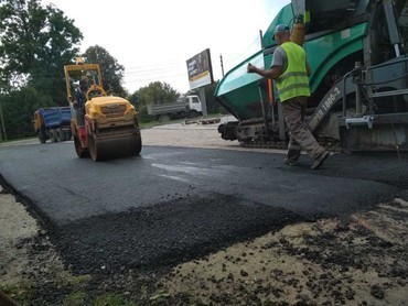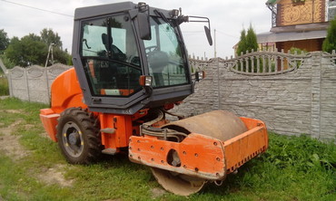Выполнение дорожных и земляных работы с использованием грунтового вибрационного катка.