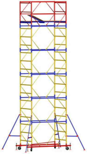 Для большей устойчивости и безопасной работы строителей и рабочих, а также для выравнивания горизонтального расположения вышки на неровной поверхности конструкция вышки оснащена винтовыми опорами.