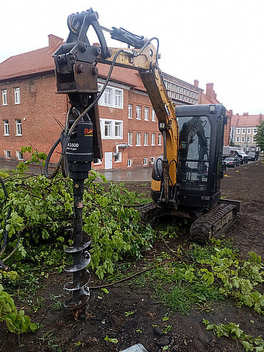 Аренда ямобура - экскаватора. Ямобур диаметр 250 мм, берёт твердые уплотнённые грунты с включением кирпичей и камня. Вес экскаватора 2,7 тонн, есть ковши 30, 40, 120 см с регулировкой угла. Гусеницы резиновые. Глубина копания до 2.7 метра без приямка, простой камаз грузит с подсыпки. Доставка нашим транспортом.